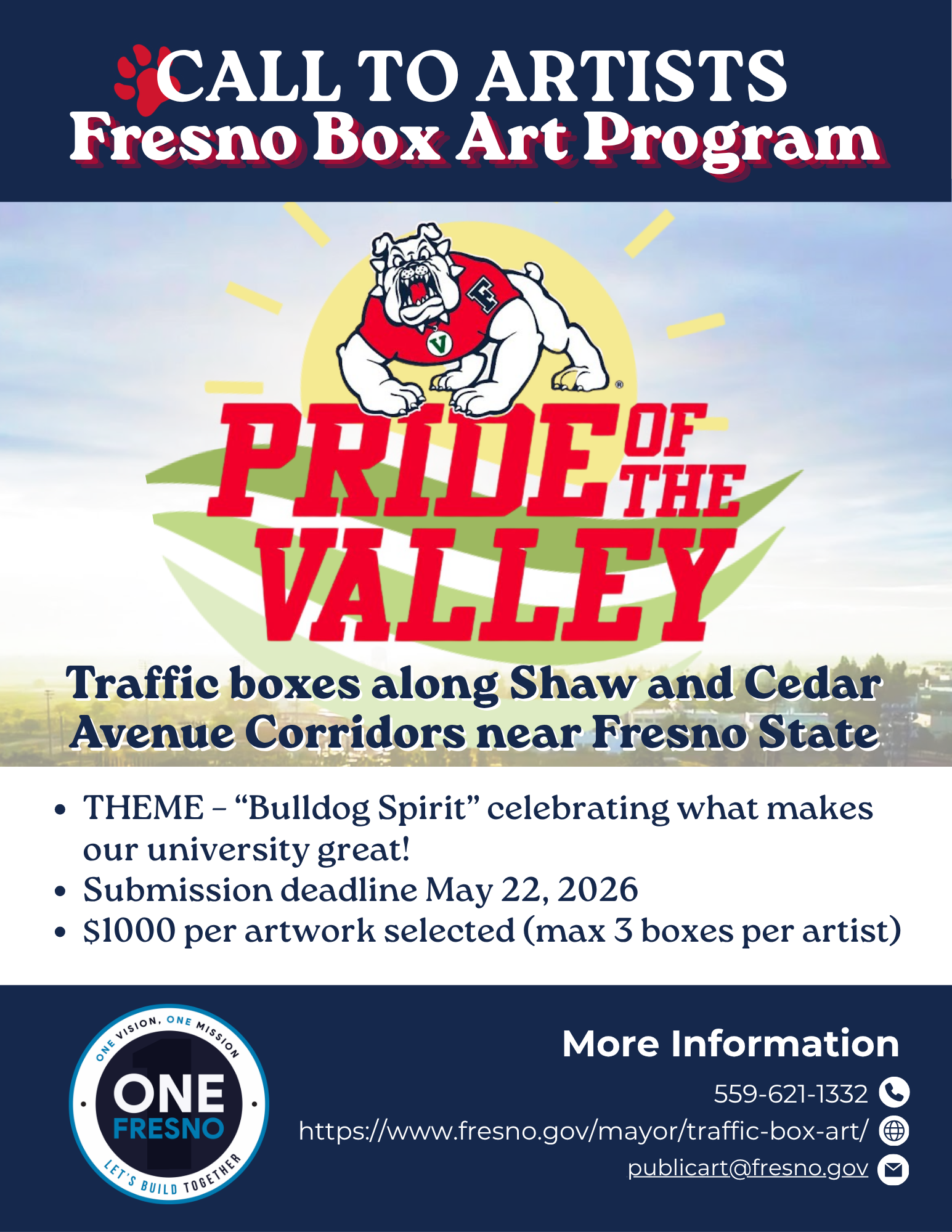 The deadline to submit is May 22, 2026 at 5 p.m. Submit your artwork and materials to publicart@fresno.gov